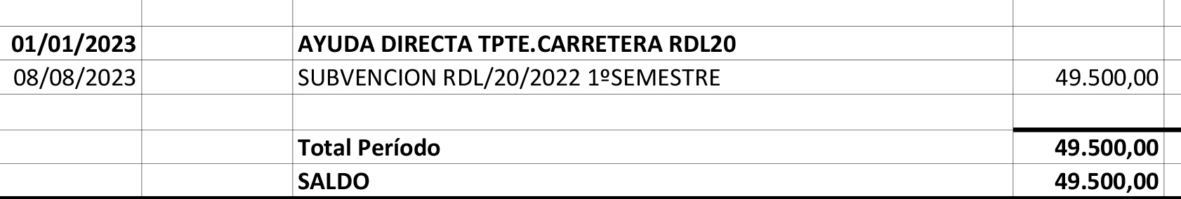 Esta empresa se ha acogido a la Convocatoria Subvención estatal RDL 14/2022 de 01 de agosto de «Medidas de sostenibilidad económica en el ámbito del transporte» Fecha 18/11/2022 –  ENLACE